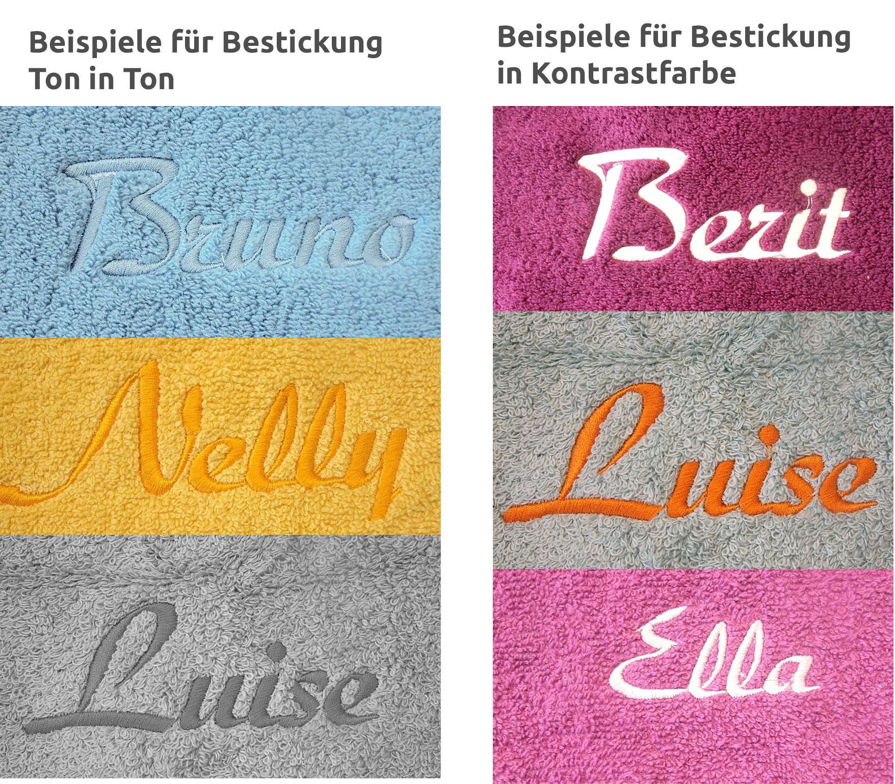 Tausendfach bewährt - unsere Frottierserie in vielen Farben, personalisiert mit Namen oder auch Spitz- oder Kosenamen!
