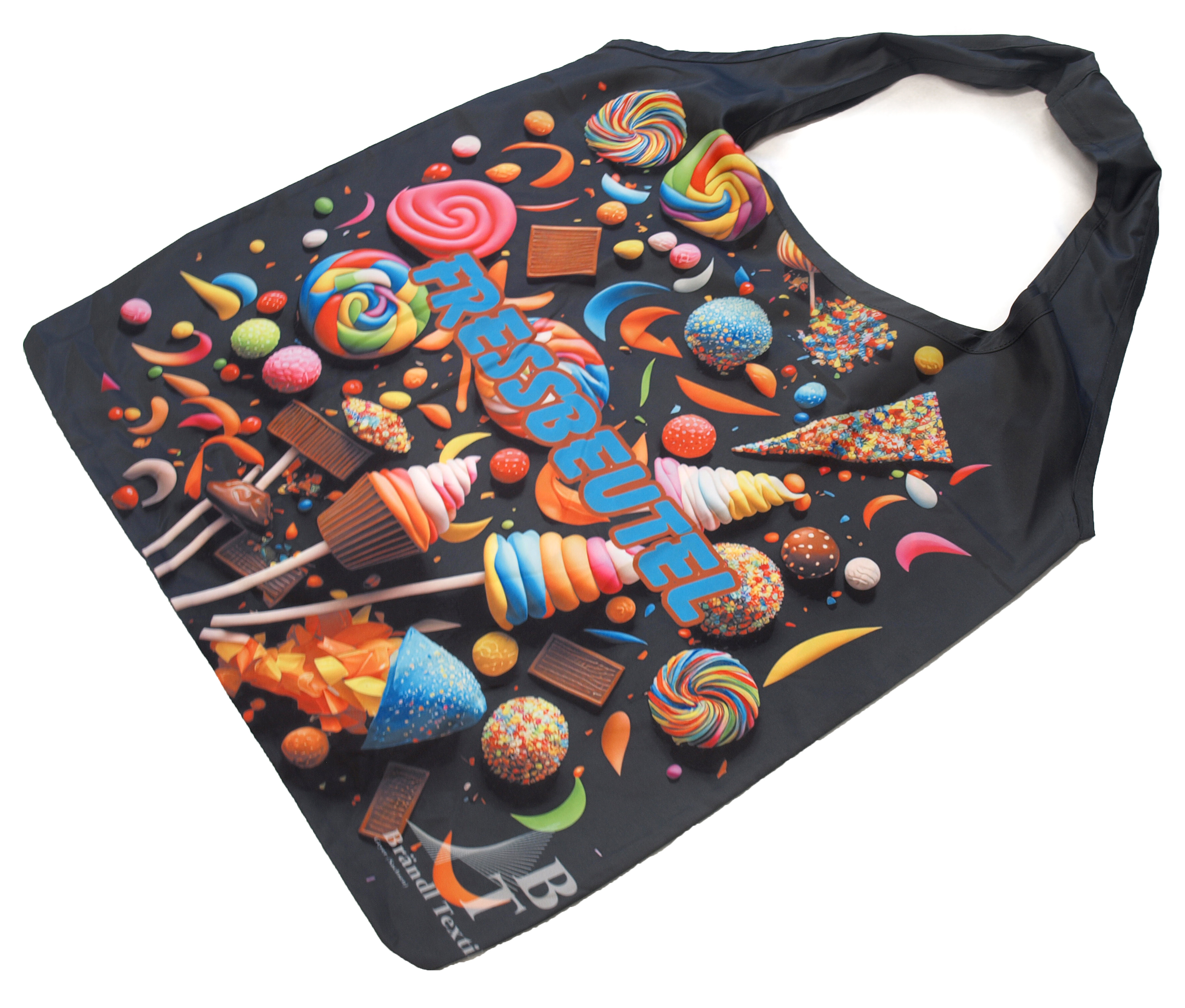 Unser witziger Fressbeutel ist perfekt als Geschenk für Freunde und Familie! Dieser geräumige Shopper ist nicht nur äußerst funktional, sondern mit seinem Süßigkeiten-Motiv auch ein lustiger Eyecatcher.