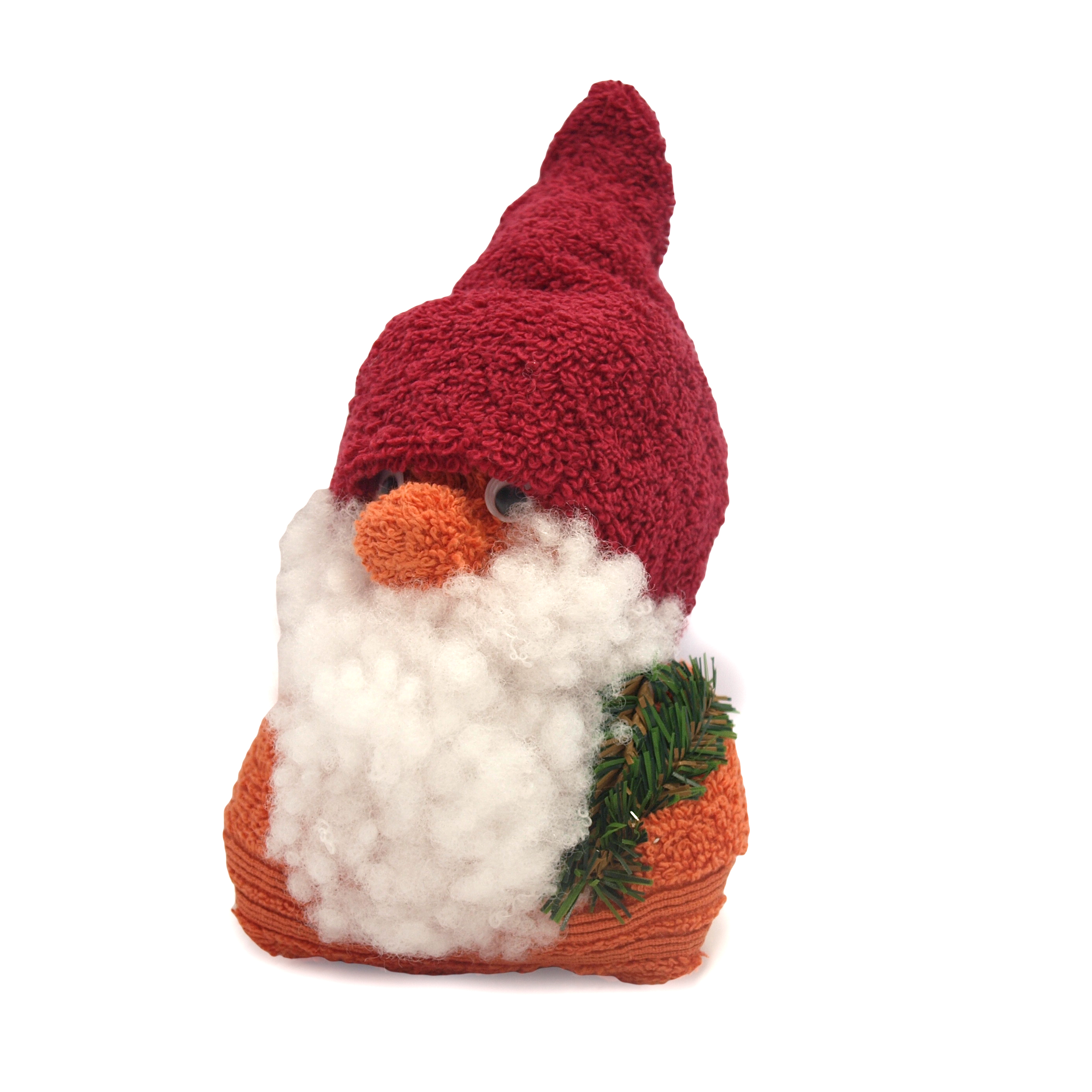 Witzige Handtuch-Figur in Gestalt eines Wichtels zum Verschenken oder Dekorieren. Machen Sie Ihren Lieben eine weihnachtliche Freude mit dieser von Hand geformten Frottierfigur, bestehend aus zwei Waschhandschuhen. Ideal als kleines Mitbringsel: der Weihnachtswichtel wird in Klarsichtfolie verpackt geliefert und kann damit direkt verschenkt werden.