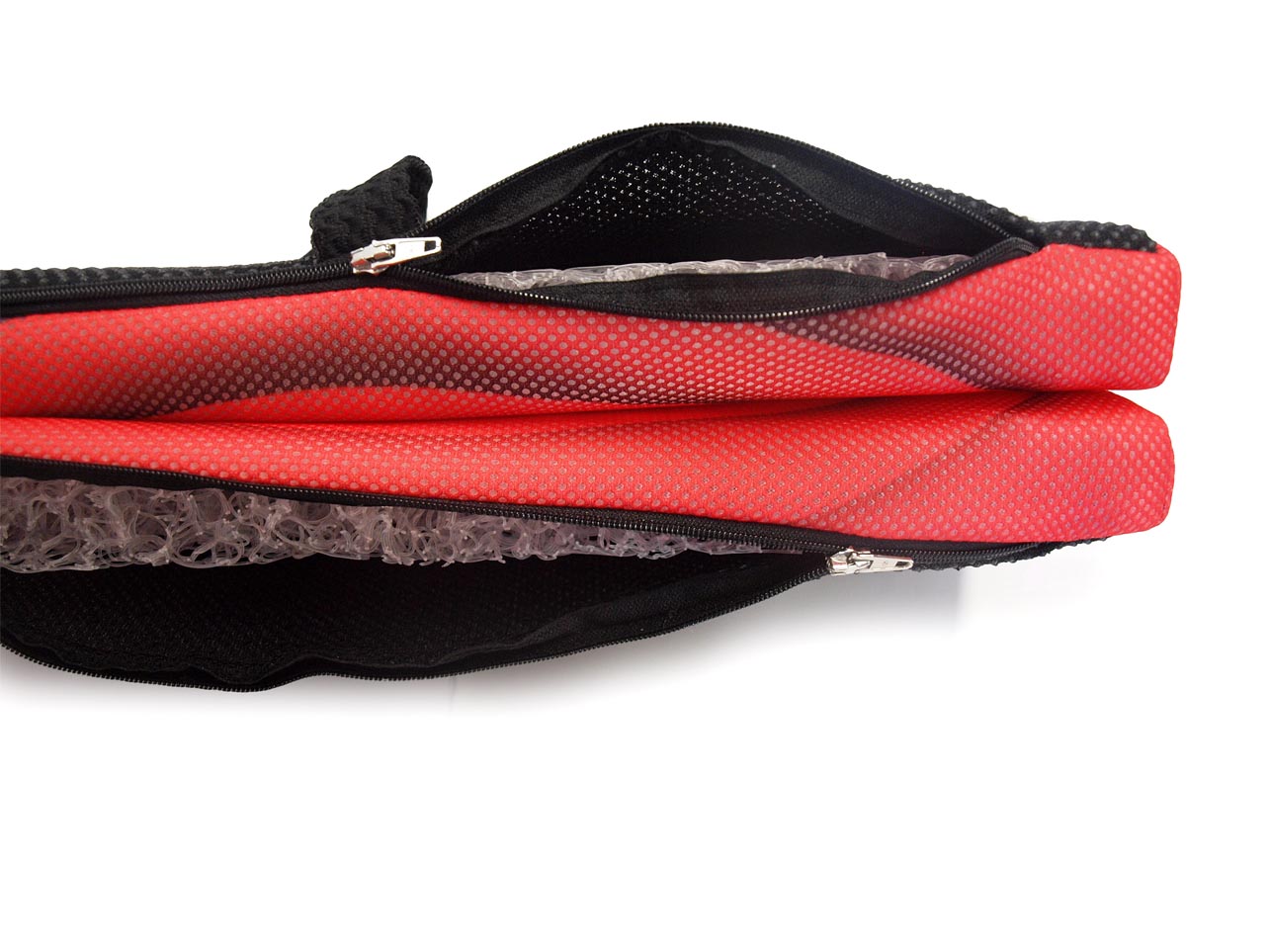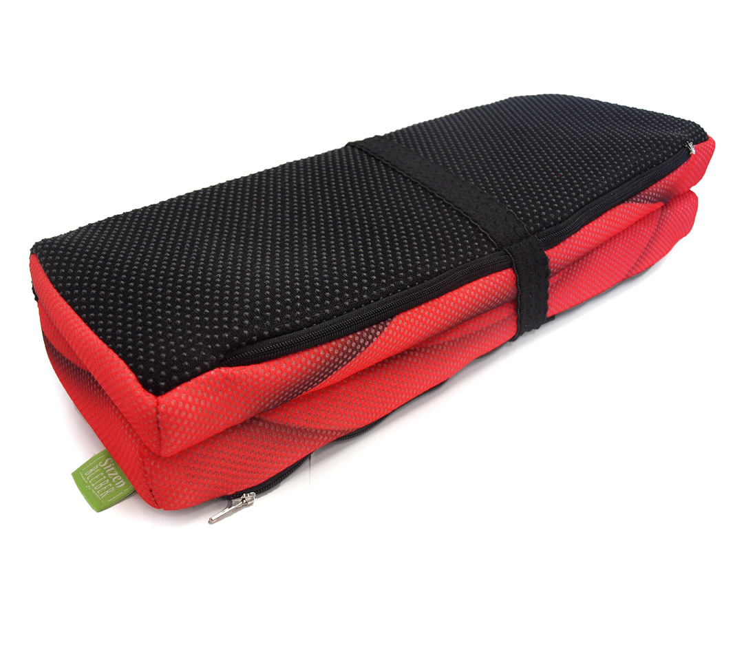 Das Kissen kann einfach in der Mitte zusammengeklappt werden. Das angenähte breite Gummiband hält es zusammen, so dass es mit seiner kompakten Form leicht verstaut und auch in der Hand getragen werden kann.