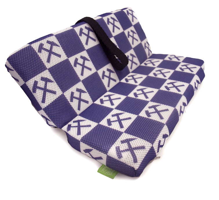 Die gekreuzten Hämmer- seit jeher ein Symbol für den Bergbau - gibt es bei uns als Allover-Muster auf hochwertigen Klappkissen für unterwegs. Besonders bei uns im Erzgebirge hat dieses Motiv sehr viele Fans, auch außerhalb vom Fußballstadion! ;-)