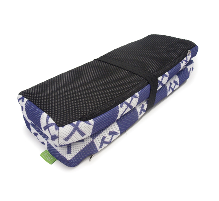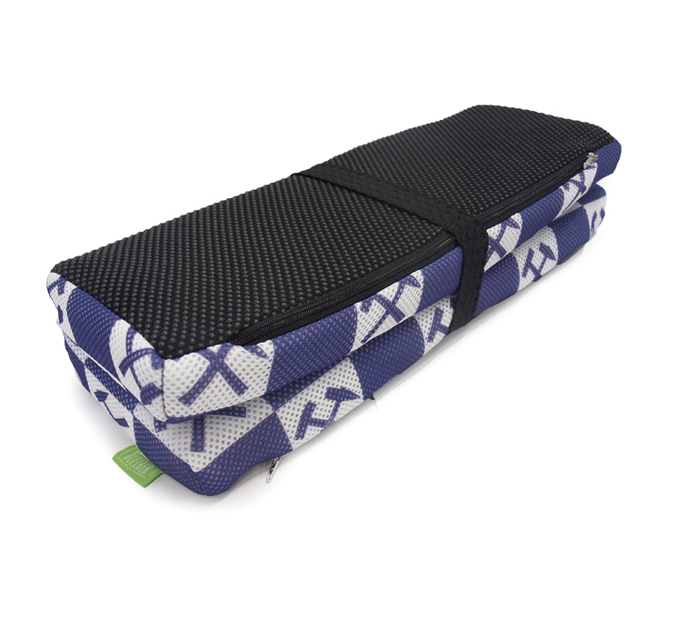 Das Kissen kann einfach in der Mitte zusammengeklappt werden. Das angenähte breite Gummiband hält es zusammen, so dass es mit seiner kompakten Form leicht verstaut und auch in der Hand getragen werden kann.