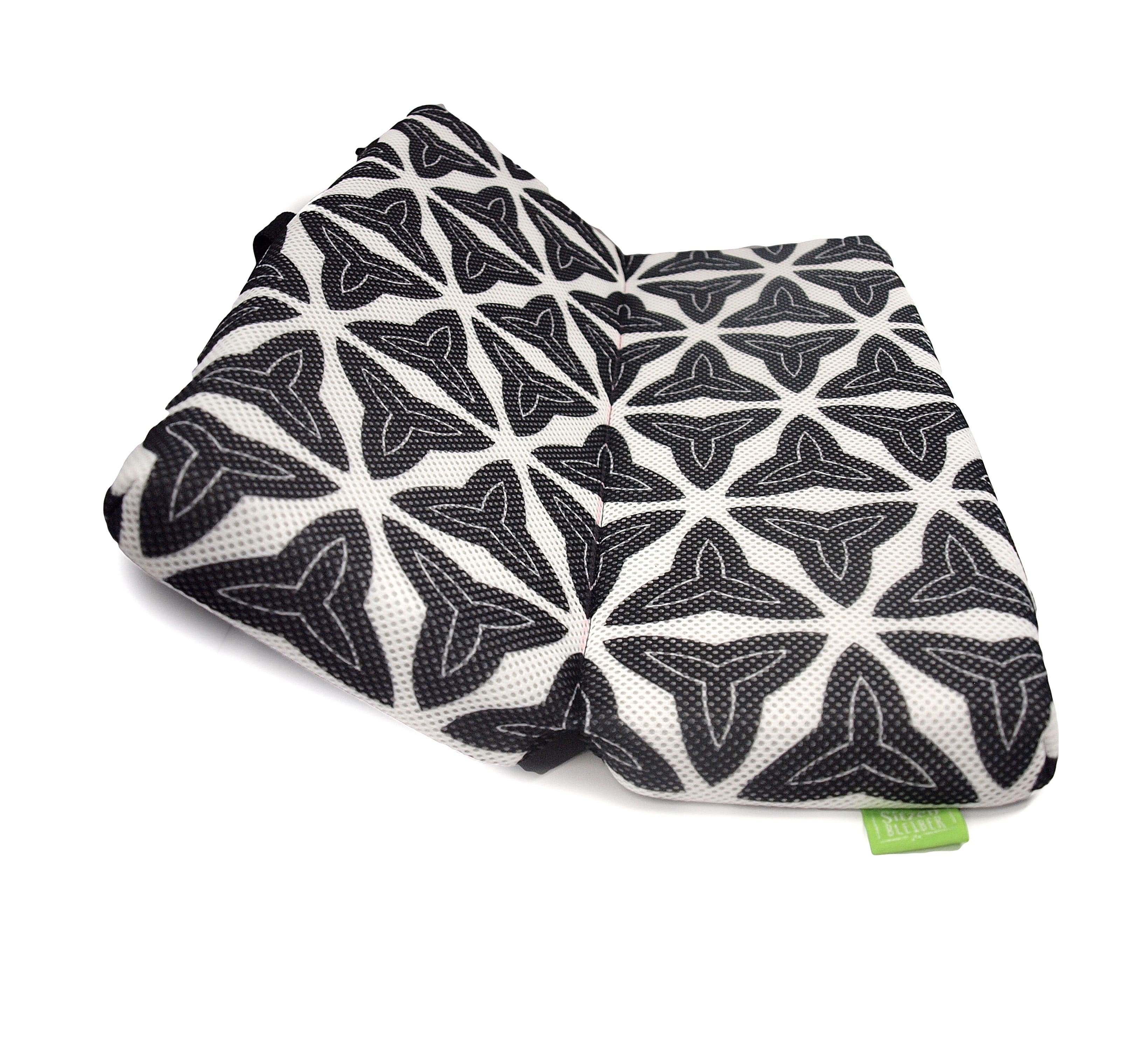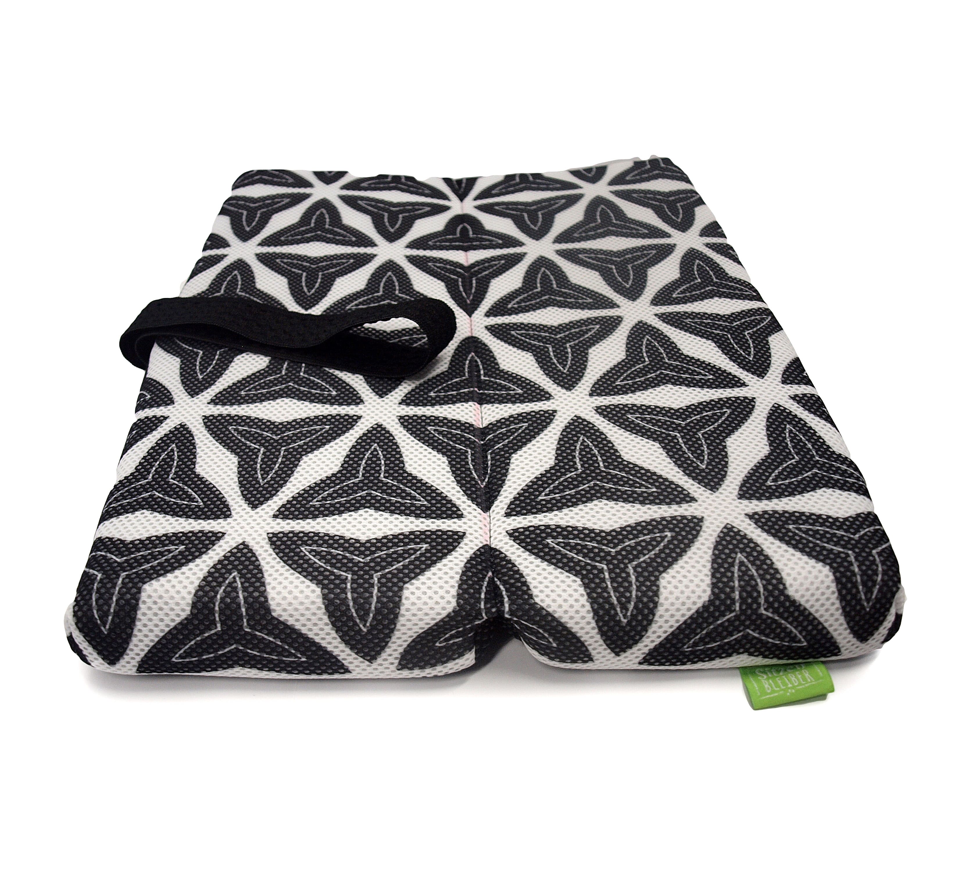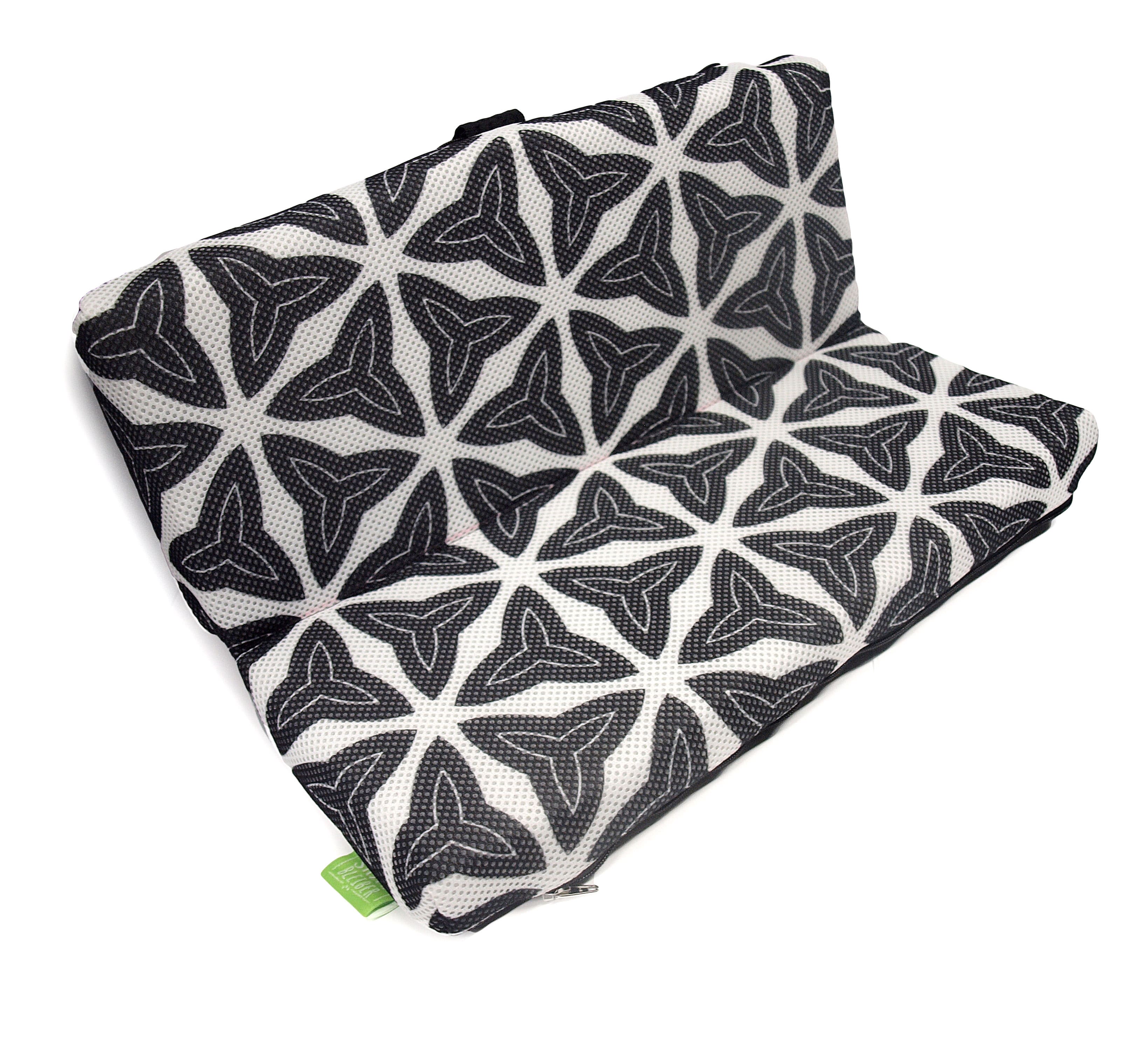 Klappkissen für unterwegs mit grafischem Muster in schwarz-weiß. Bestens geeignet für Frauen und Männer, Kinder und Erwachsene sowie als Geschenk für jeden!