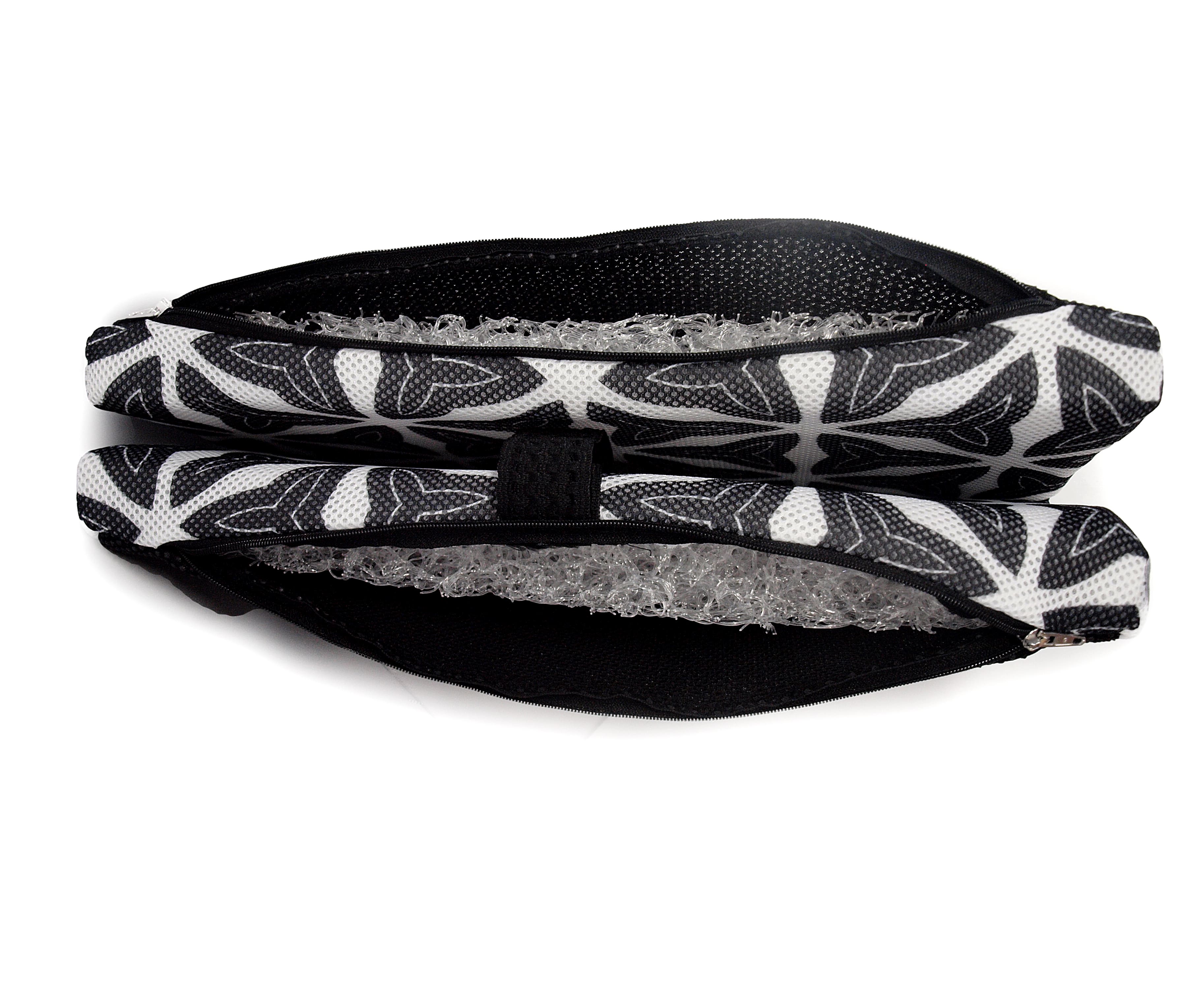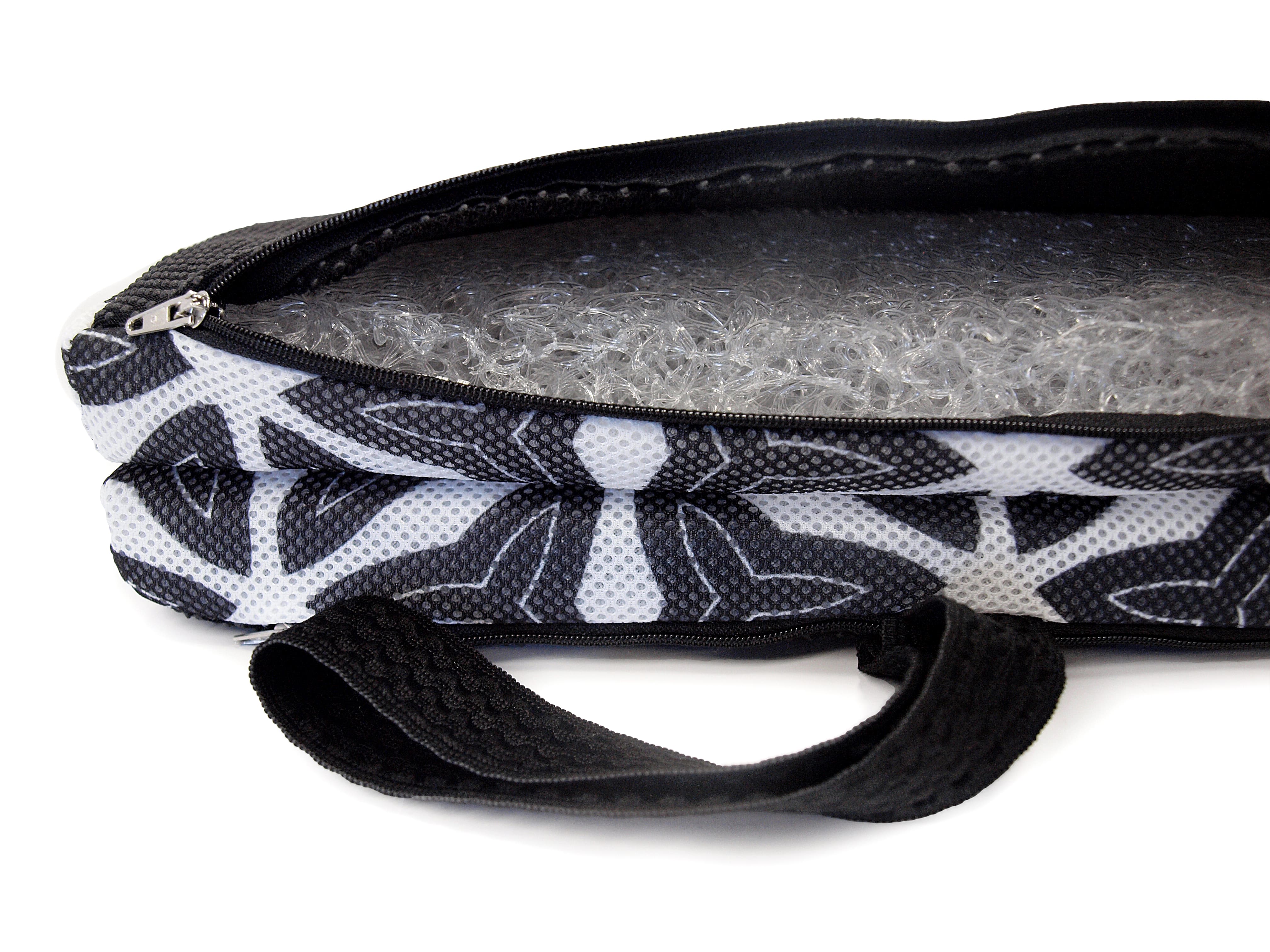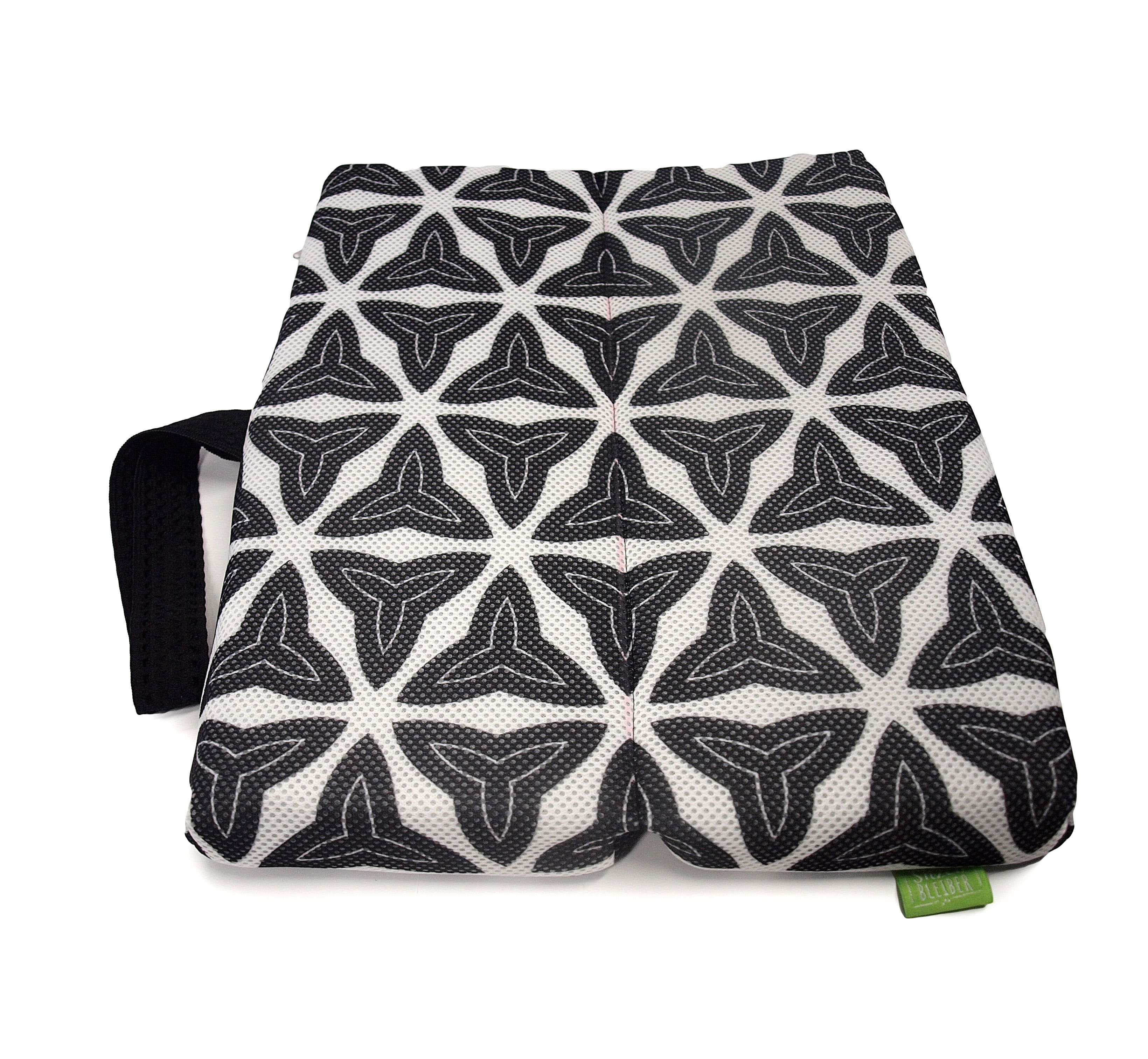 Klappkissen für unterwegs mit grafischem Muster in schwarz-weiß. Bestens geeignet für Frauen und Männer, Kinder und Erwachsene sowie als Geschenk für jeden!