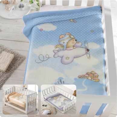 Wohn- und Schlafdecke "Teddy und Flieger" natur